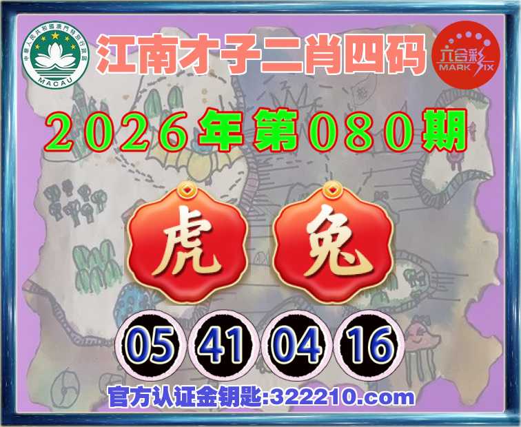 080期: 江南才子 🀄二肖四码🀄【虎兔】【05.41.04.16】开:00准