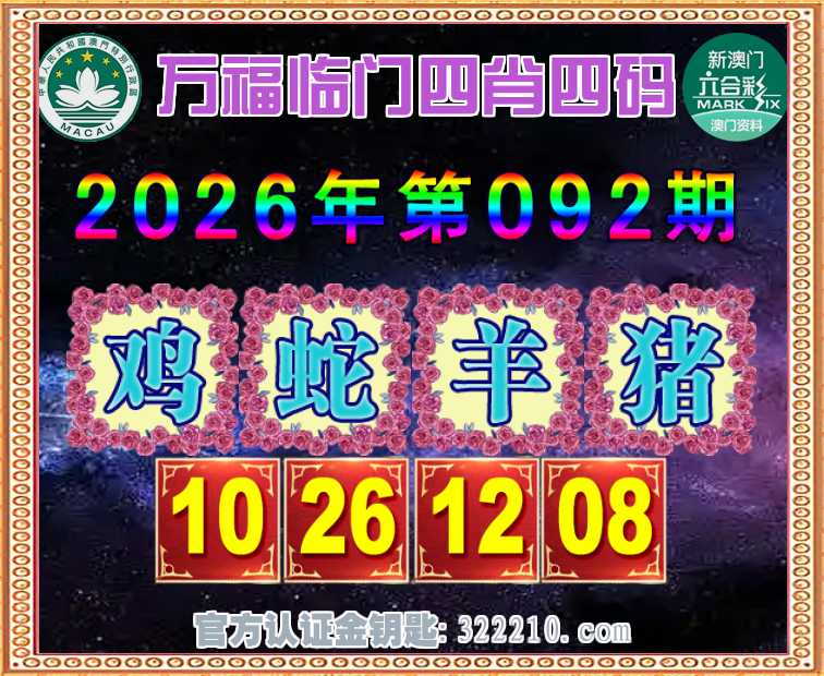 092期:【万福临门】 🥫四肖四码🥫【鸡蛇羊猪】【10.26.12.08】开:00准