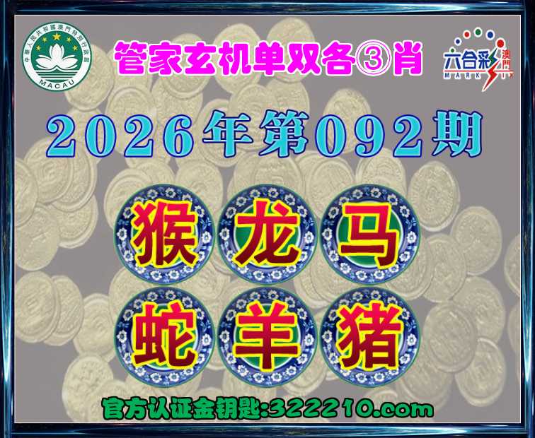 092期:〖管家玄机〗 🥽单双各③肖🥽【猴.龙.马.蛇.羊.猪】开:00准