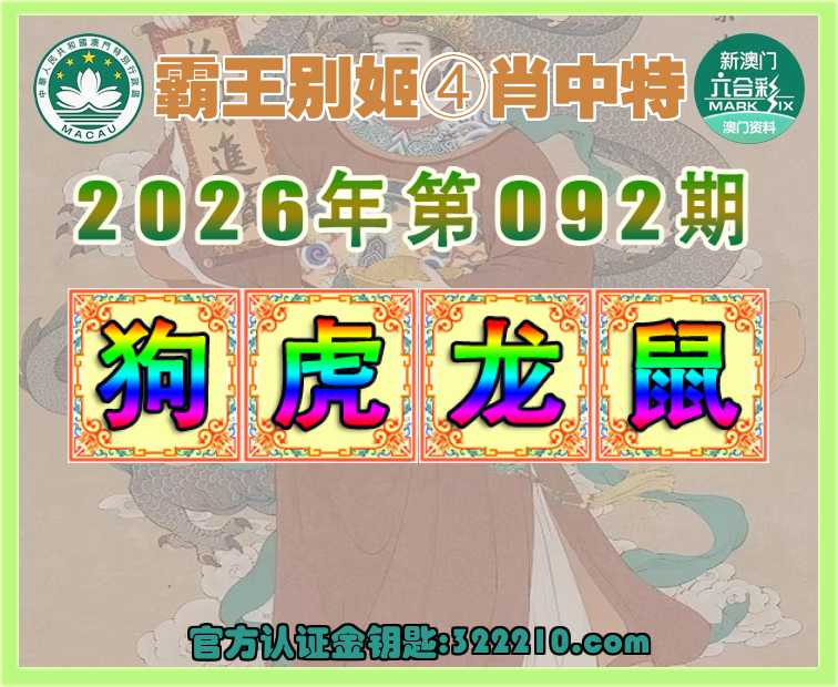092期:【霸王别姬】 🤩④肖中特🤩【狗.虎.龙.鼠】开:00准