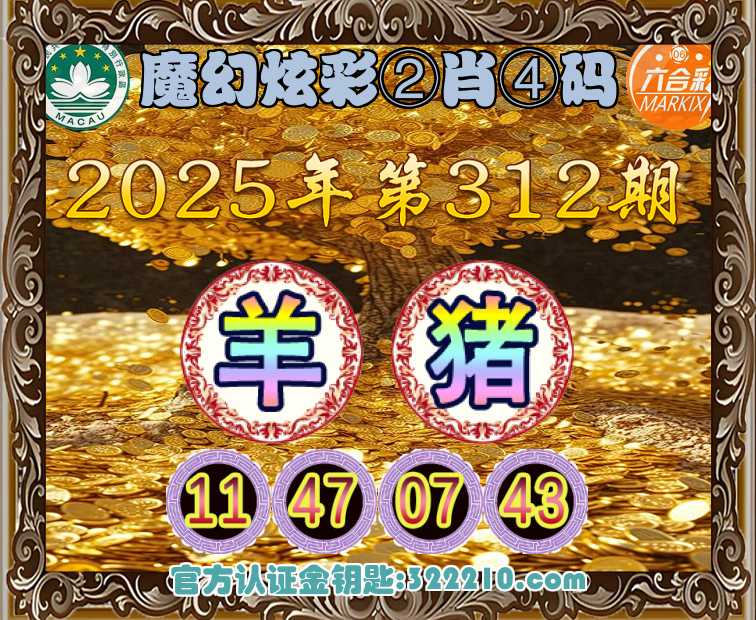 312期:『魔幻炫彩』 🎉②肖④码🎉【羊猪】【11.47.07.43】开:00准
