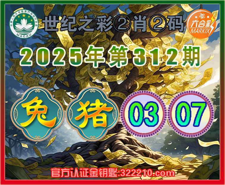 312期:🥽『世纪之彩』🥽②肖②码🥽【兔猪】【03.07】开:00准