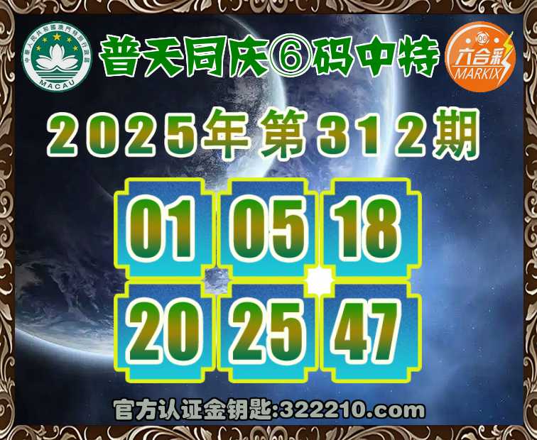 312期: 普天同庆 🀄⑥码中特🀄【01.05.18.20.25.47】开:00准