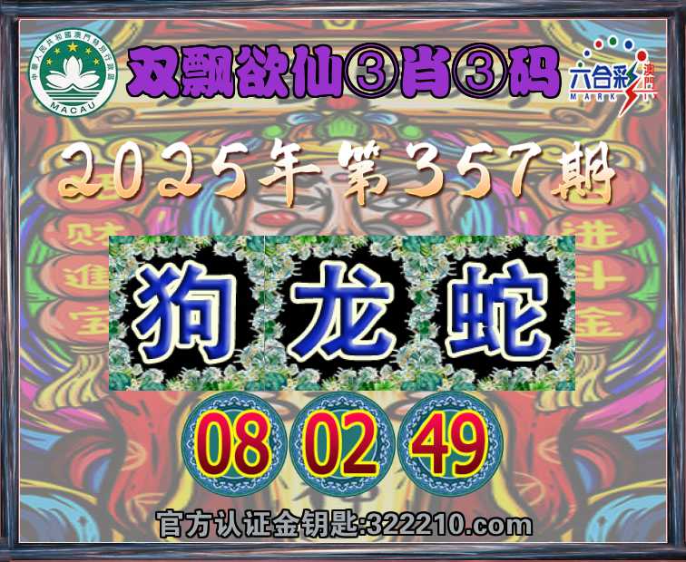 357期:《双飘欲仙》 📙③肖③码📙【狗龙】【08.02.49】开:蛇49