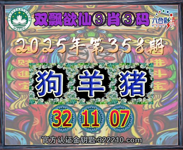 358期:《双飘欲仙》 📙③肖③码📙【狗羊】【32.11.07】开:猪07