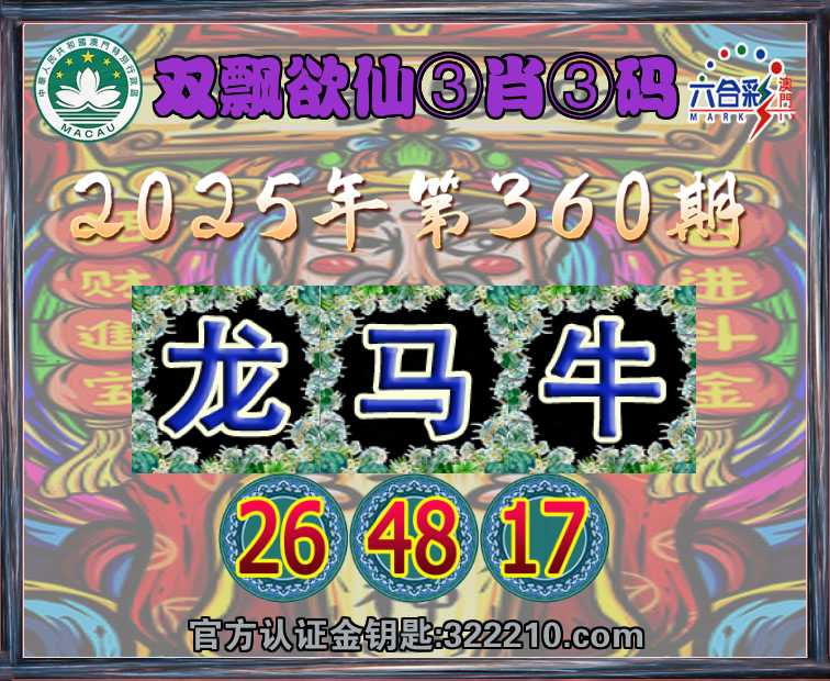 360期:《双飘欲仙》 📙③肖③码📙【龙马】【26.48.17】开:牛41