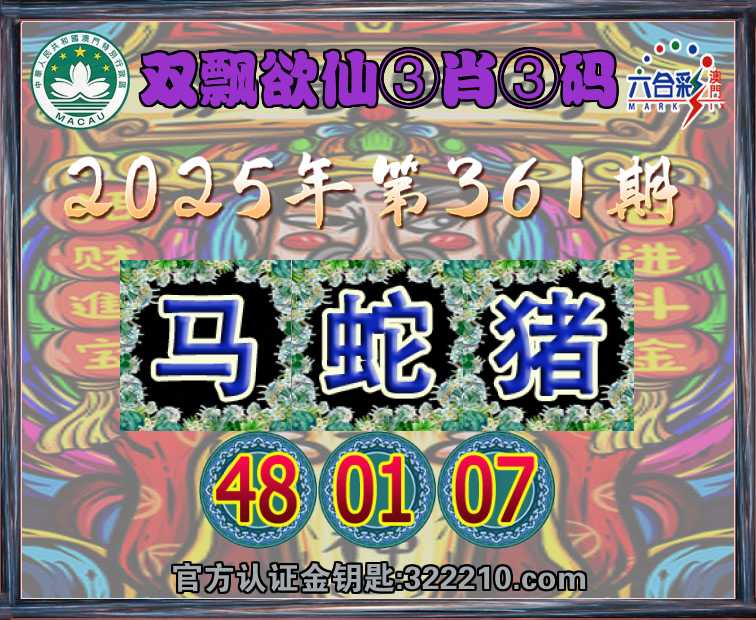 361期:《双飘欲仙》 📙③肖③码📙【蛇猪】【48.01.07】开:马24