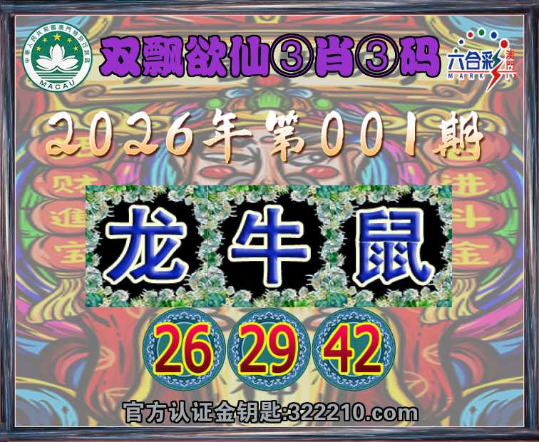 001期:《双飘欲仙》 📙③肖③码📙【龙鼠】【26.29.42】开:牛29