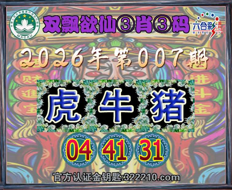 007期:《双飘欲仙》 📙③肖③码📙【虎猪】【04.41.31】开:牛41