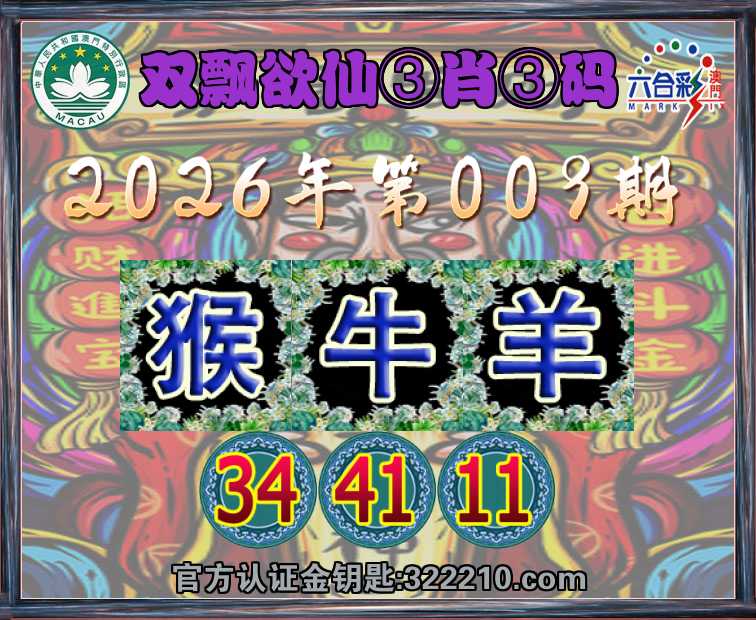 009期:《双飘欲仙》 📙③肖③码📙【猴牛羊】【34.41.11】开:虎28