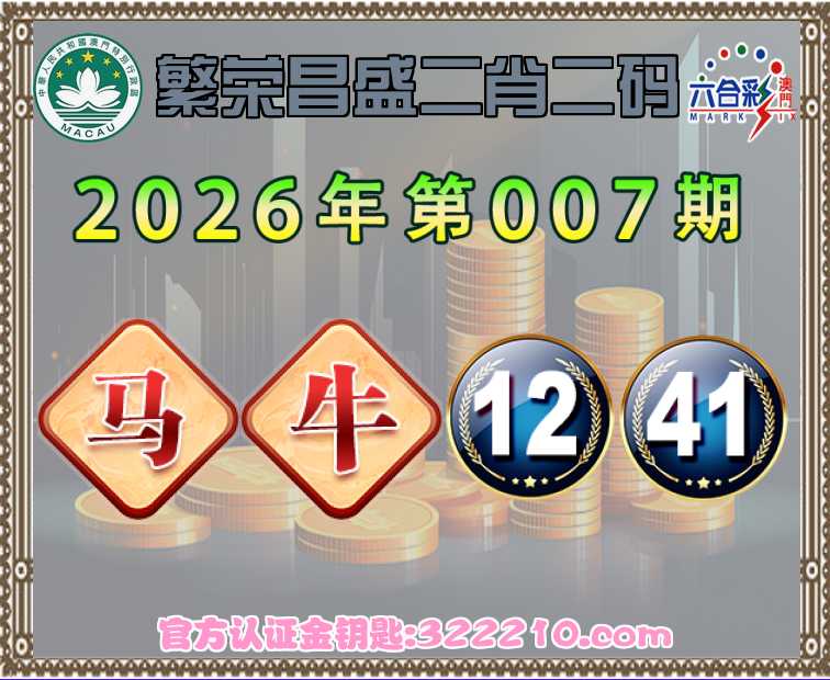 007期: ♣️『繁荣昌盛』 ♣️二肖二码♣️【马】【12.41】开:牛41