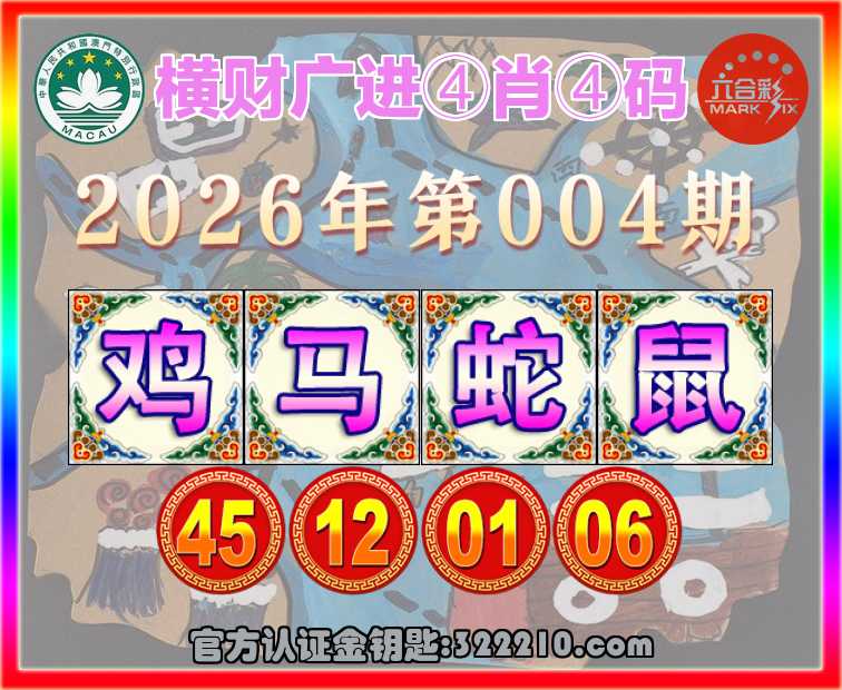 004期:《横财广进》 🧏‍♀️④肖④码🧏‍♀️【马蛇鼠】【45.12.01.06】开:鸡45
