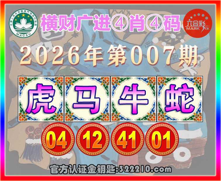 007期:《横财广进》 🧏‍♀️④肖④码🧏‍♀️【虎马蛇】【04.12.41.01】开:牛41