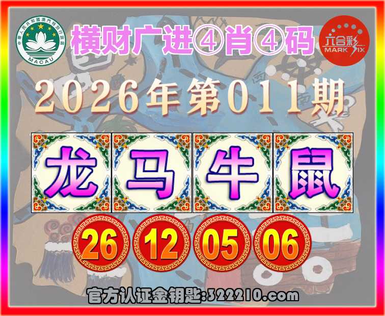 011期:《横财广进》 🧏‍♀️④肖④码🧏‍♀️【龙马牛鼠】【26.12.05.06】开:羊11
