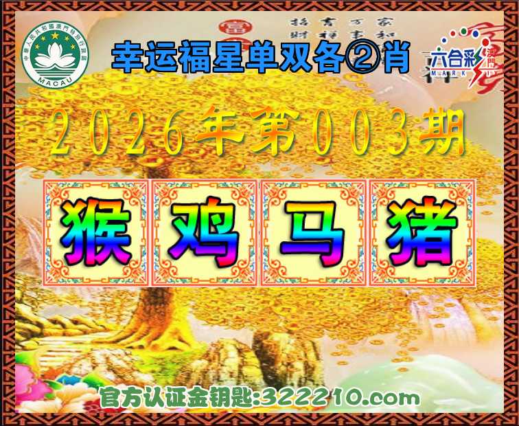 003期:《幸运福星》 🧦单双各②肖🧦【猴..马.猪】开:鸡09