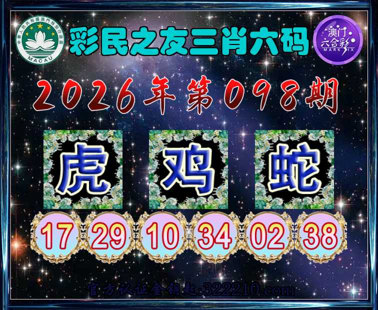 098期:【彩民之友】 🥰三肖六码🥰【鸡蛇】开:虎17