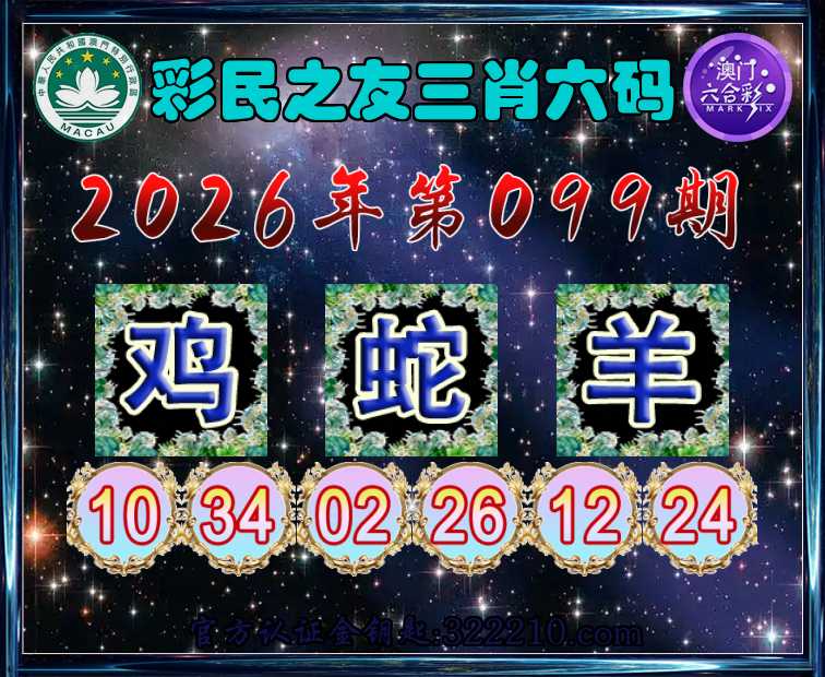 099期:【彩民之友】 🥰三肖六码🥰【鸡蛇】开:羊12