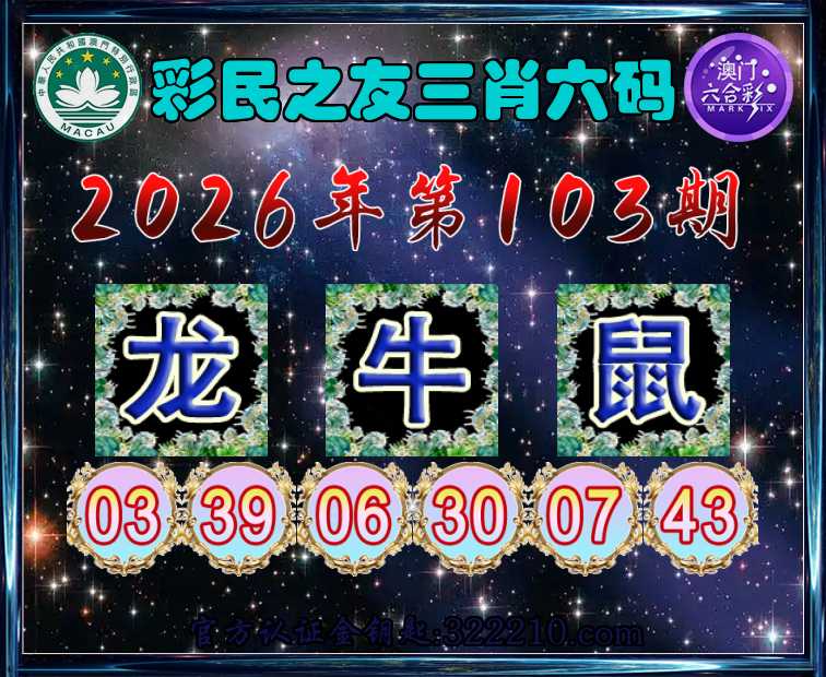 103期:【彩民之友】 🥰三肖六码🥰【龙鼠】开:牛06