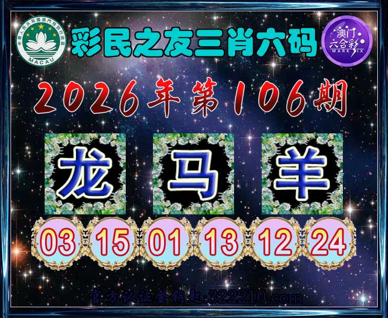 106期:【彩民之友】 🥰三肖六码🥰【龙马羊】开:鸡22