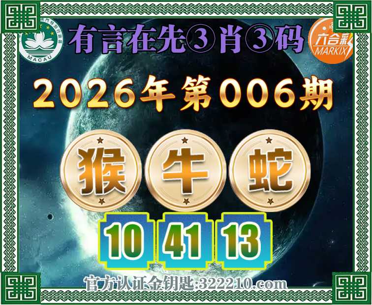 006期:『有言在先』 ♣️③肖③码♣️【猴牛】【10.41.13】开:蛇13