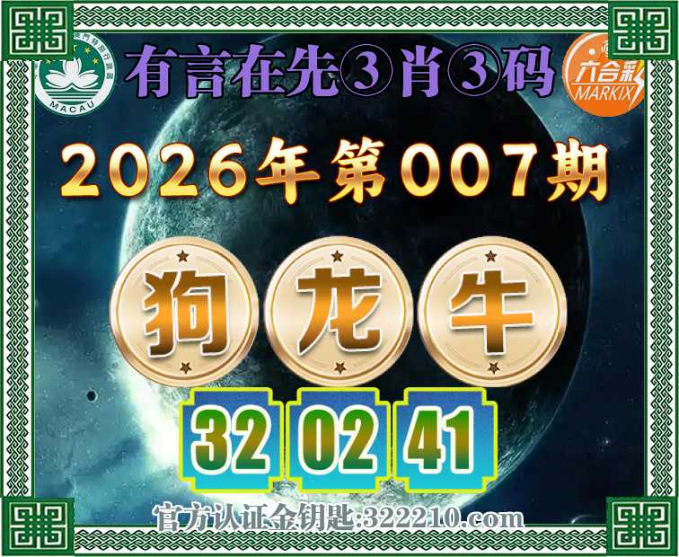 007期:『有言在先』 ♣️③肖③码♣️【狗龙】【32.02.41】开:牛41