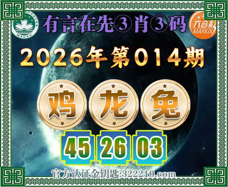 014期:『有言在先』 ♣️③肖③码♣️【鸡兔】【45.26.03】开:龙26