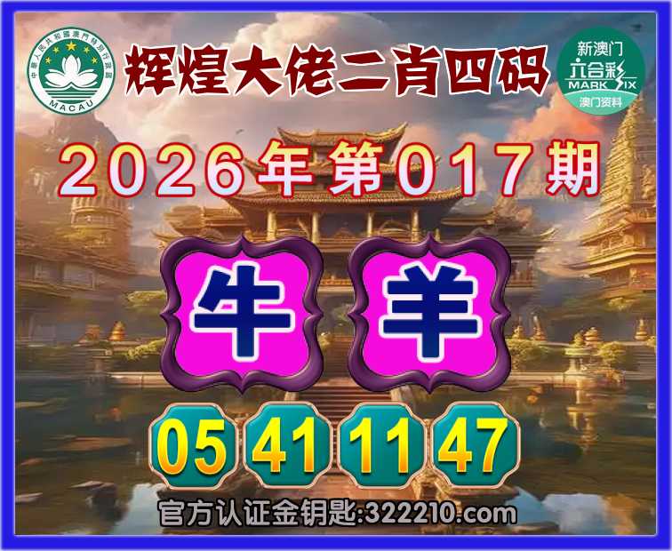 017期: 🎉『辉煌大佬』 🎉二肖四码🎉【牛羊】【05.41.11.47】开:00准