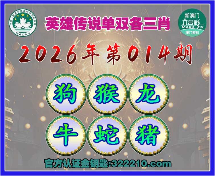 014期:《英雄传说》 🧣单双各三肖🧣【狗.猴..牛.蛇.猪】开:龙26