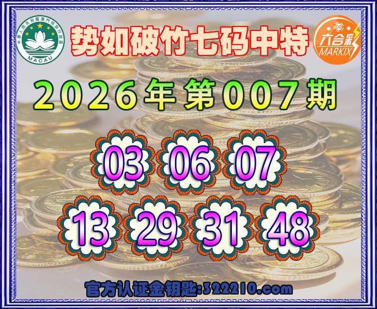 007期:【势如破竹】七码中特⚽【03.06.07.13.29.31.48】开:41