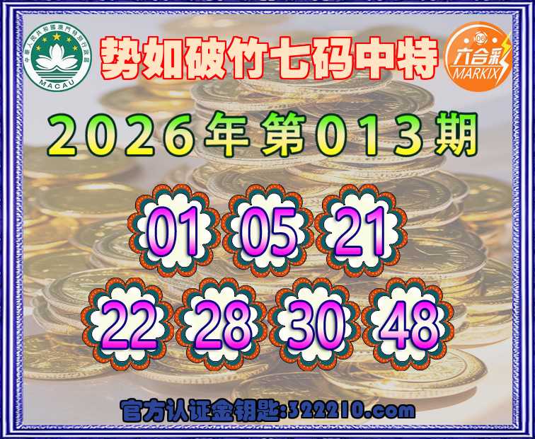 013期:【势如破竹】七码中特⚽【01.05.21.22.28.30.48】开:01