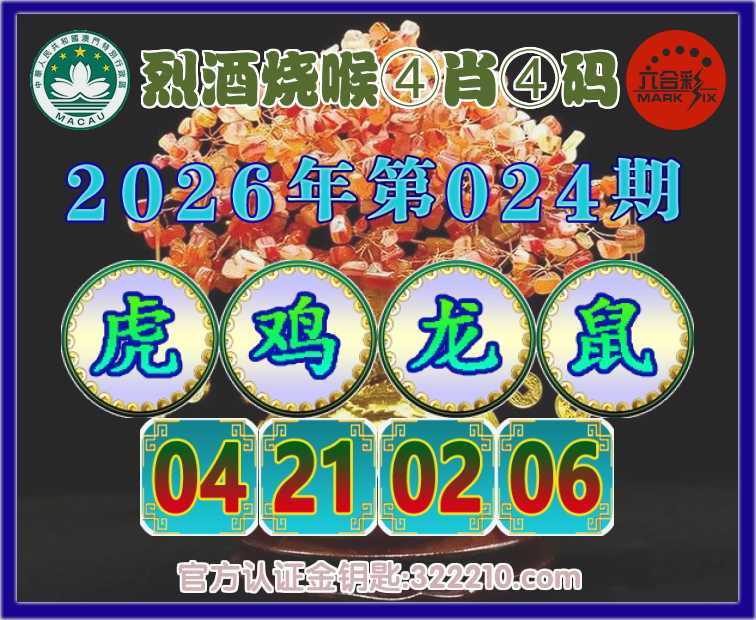 024期:【烈酒烧喉】 ♠️④肖④码♠️【虎鸡龙鼠】【04.21.02.06】开:00准