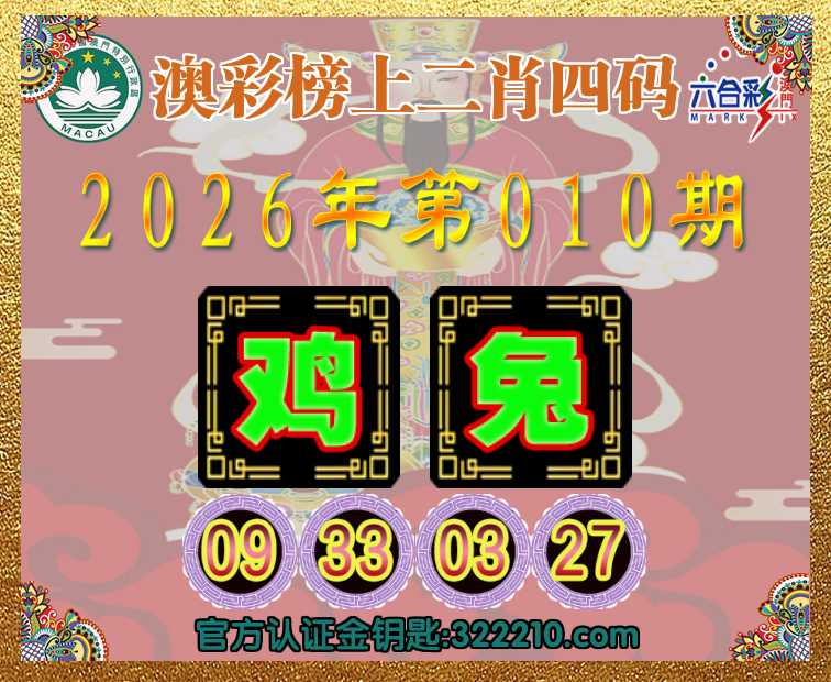010期:《澳彩榜上》 📙二肖四码📙【鸡】【09.33.03.27】开:兔27