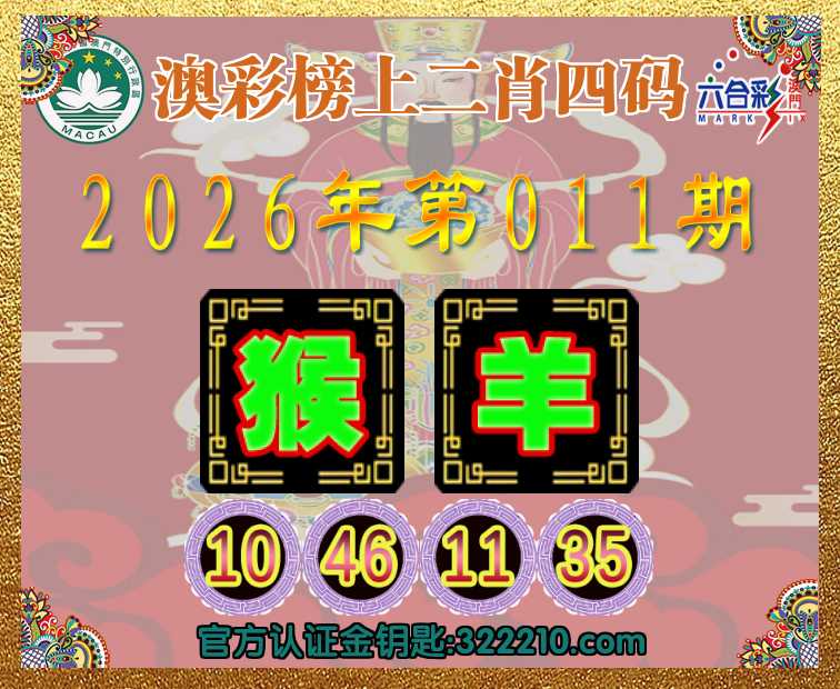 011期:《澳彩榜上》 📙二肖四码📙【猴】【10.46.11.35】开:羊11