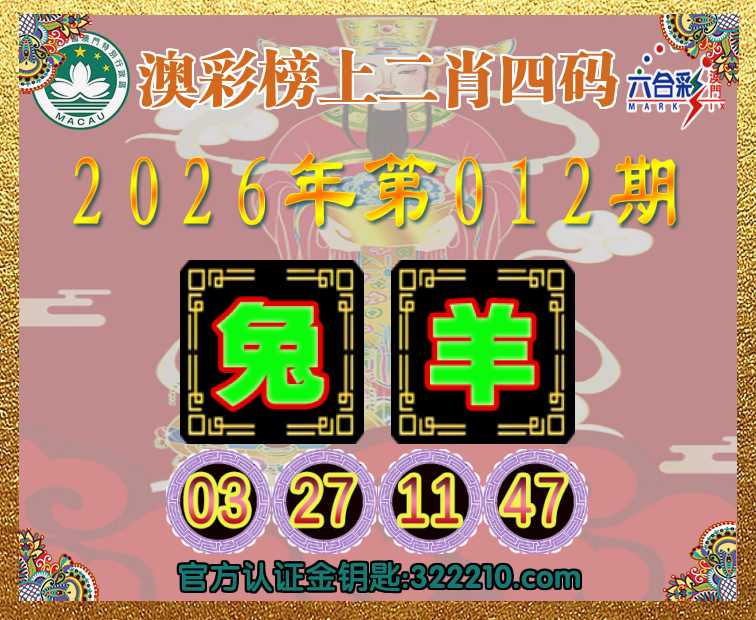 012期:《澳彩榜上》 📙二肖四码📙【兔】【03.27.11.47】开:羊11