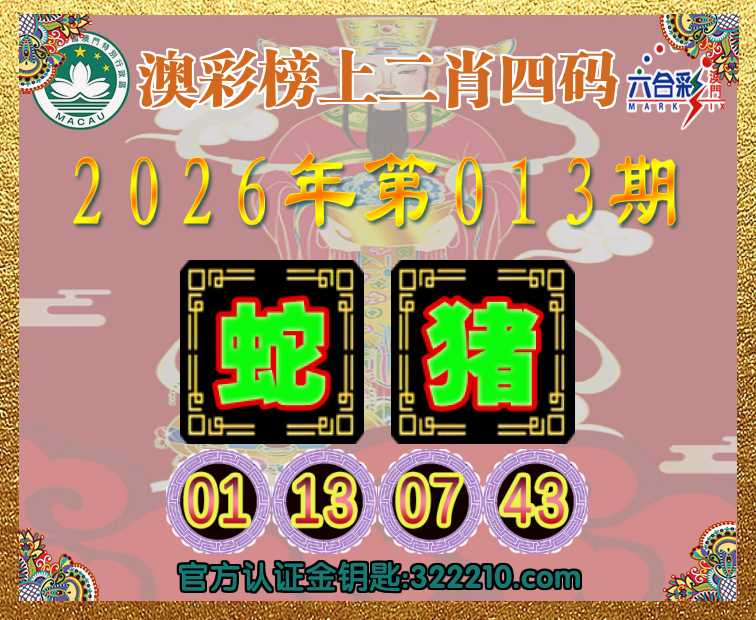 013期:《澳彩榜上》 📙二肖四码📙【猪】【01.13.07.43】开:蛇01