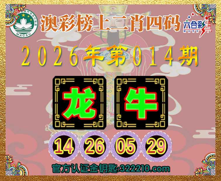 014期:《澳彩榜上》 📙二肖四码📙【牛】【14.26.05.29】开:龙26