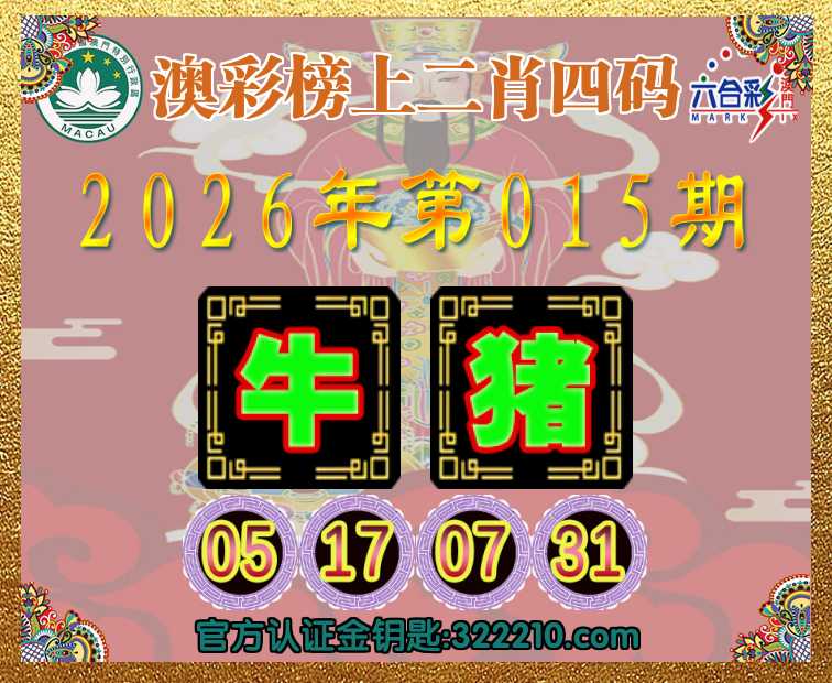 015期:《澳彩榜上》 📙二肖四码📙【牛】【05.17.07.31】开:猪31