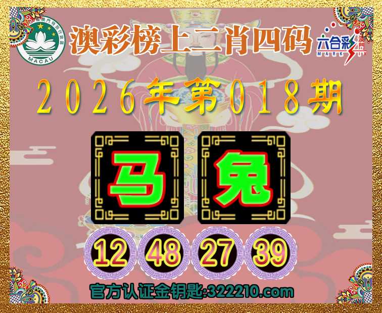 018期:《澳彩榜上》 📙二肖四码📙【马】【12.48.27.39】开:兔39