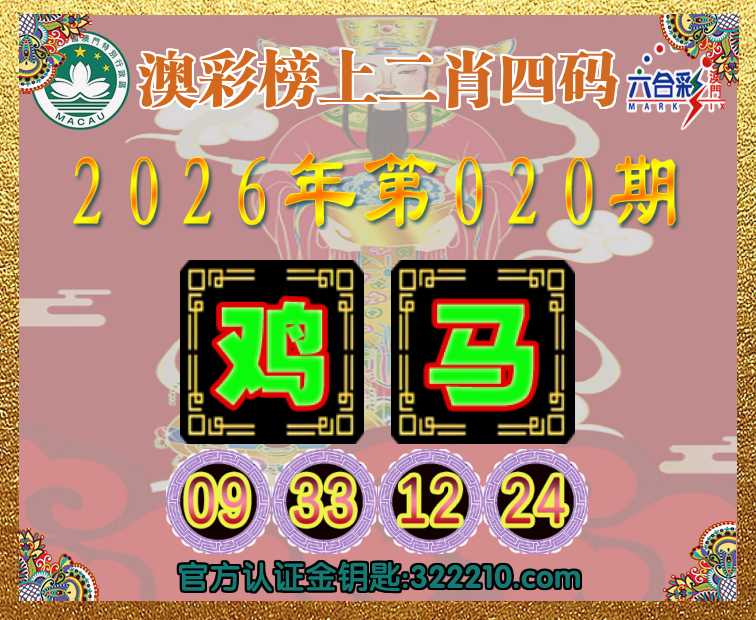 020期:《澳彩榜上》 📙二肖四码📙【鸡】【09.33.12.24】开:马12