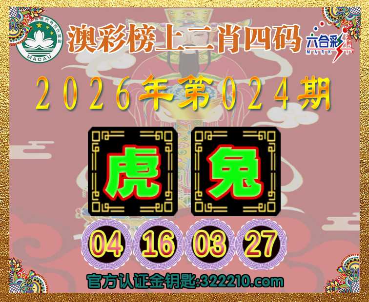 024期:《澳彩榜上》 📙二肖四码📙【虎兔】【04.16.03.27】开:00准