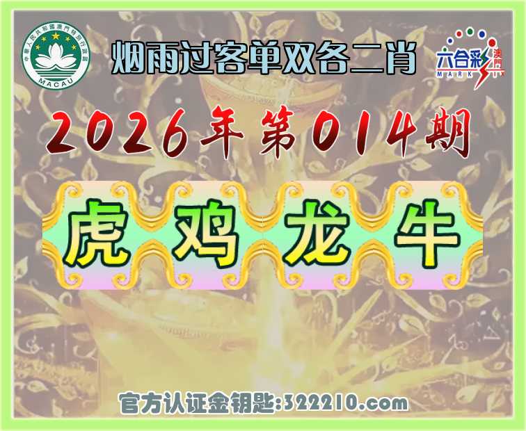 014期:【烟雨过客】 🎉单双各二肖🎉【虎.鸡..牛】开:龙26