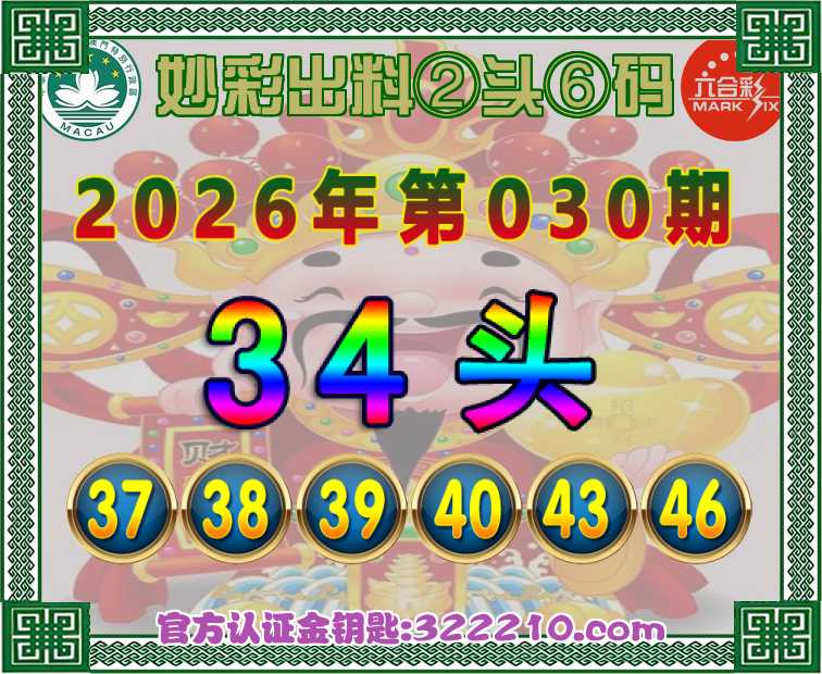 031期:【妙彩出料】 👉②头⑥码👉【34头】开:龙26
