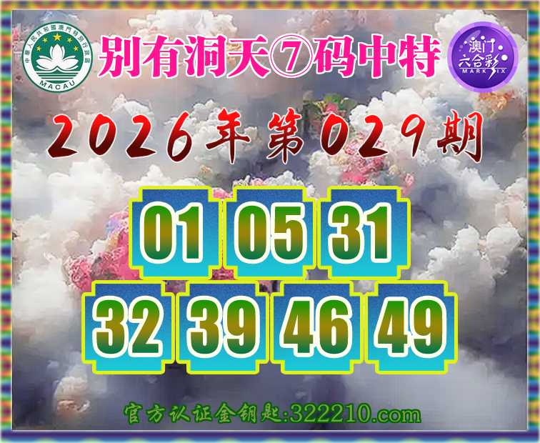 029期:【别有洞天】 🏆⑦码中特🏆【01.05.31.32.39.46.49】开:01