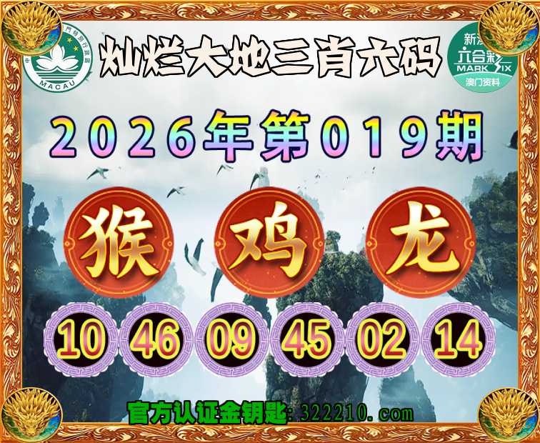 019期:【灿烂大地】 ♠️三肖六码♠️【鸡龙】开:猴46