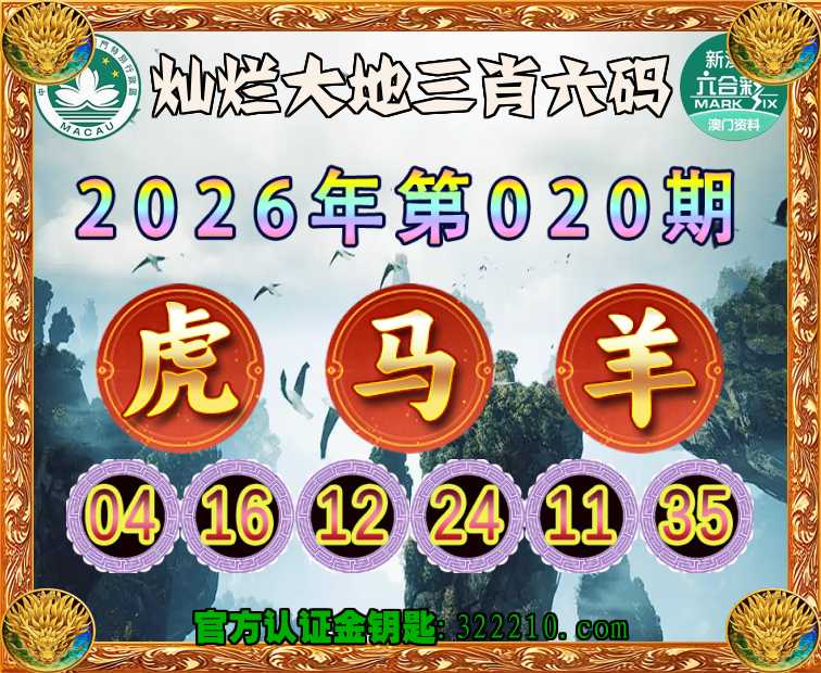 020期:【灿烂大地】 ♠️三肖六码♠️【虎羊】开:马12