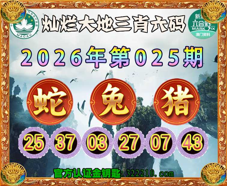 025期:【灿烂大地】 ♠️三肖六码♠️【兔猪】开:蛇37