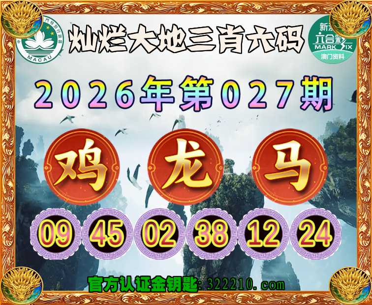 027期:【灿烂大地】 ♠️三肖六码♠️【龙马】开:鸡45