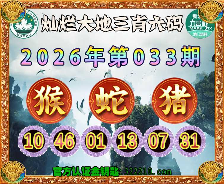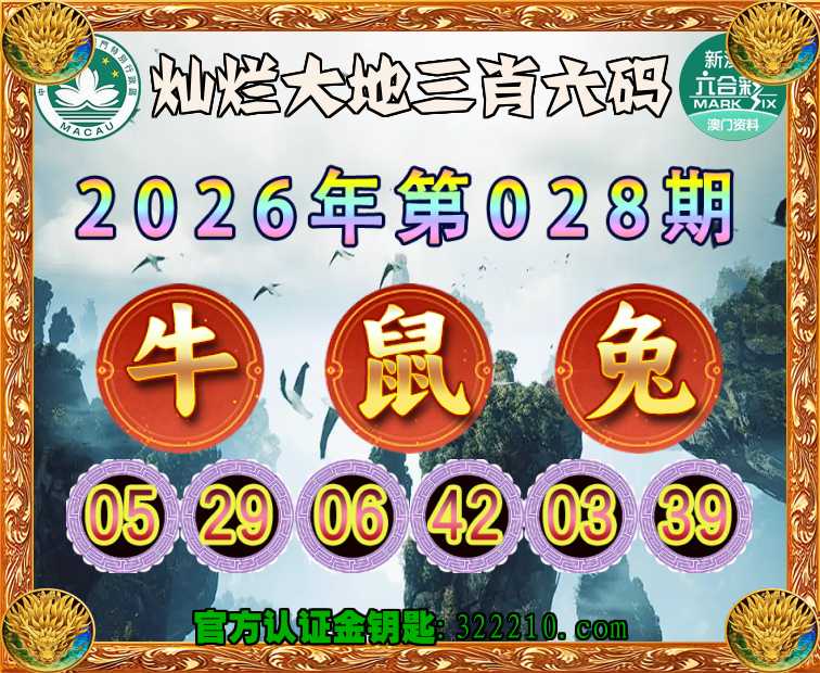 主题: 039期:金钥匙高手【灿烂大地🔥三肖六码】正版澳彩