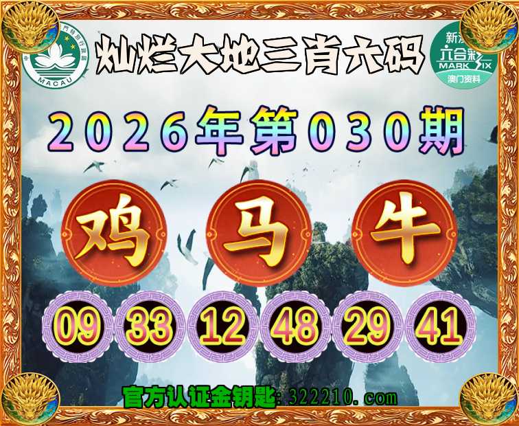 030期:【灿烂大地】 ♠️三肖六码♠️【鸡马】开:牛41