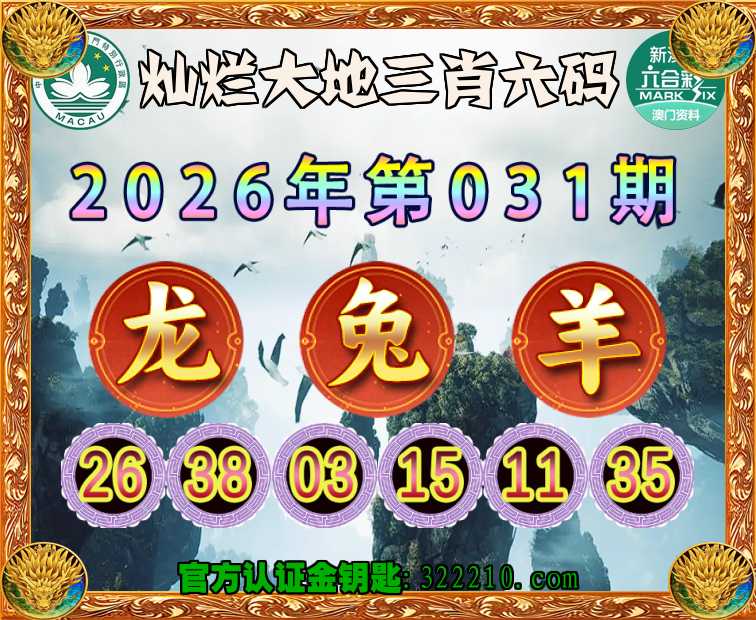 031期:【灿烂大地】 ♠️三肖六码♠️【兔羊】开:龙26